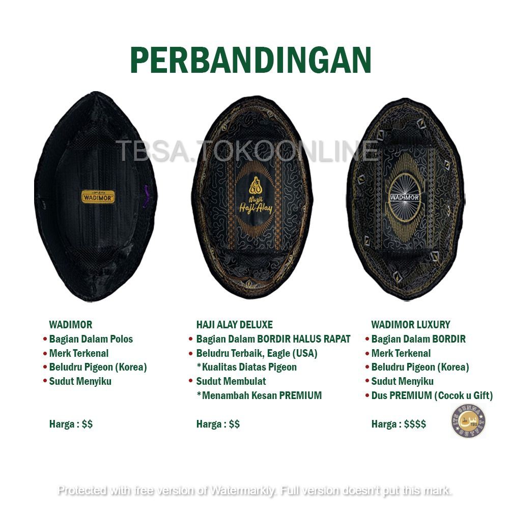 Kelebihan - Kelebihan membeli Peci Songkok Hitam Polos Wadimor AC, Non AC, Tinggi 8, 9, 10 ORIGINAL Peci Kopiah Hitam Polos AC, Non AC, Kopeah Beludru Pigeon / Anak Dewasa / Songkok Awing, Atlas Lewat / Kopyah Pendek / Kopiyah Presiden President Sultan / Kupiah Nasional Murah di Toko ini