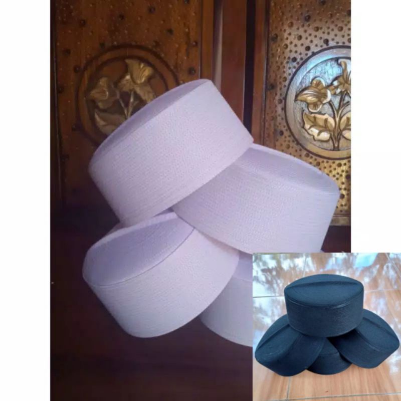 Harga Peci PUTIH dan HITAM kopiah haji kopyah batok tinggi 8cm songkok kalbut pria dewasa remaja anak laki laki